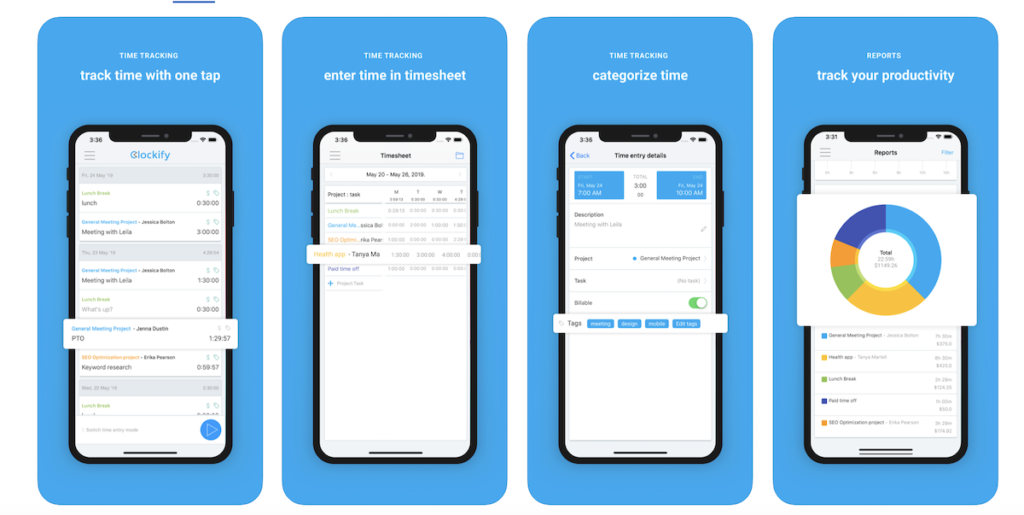 The Clockify time tracking app for freelancers lets you see who worked on what and know how much money you earn while reviewing your team’s time and exporting the data using their web application.