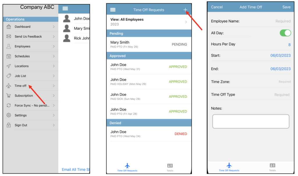 Per our customers’ requests, we are happy to introduce our new time off feature where employees can submit a time off request (paid or non-paid) and employers can accept or deny the request. This feature will allow employers to keep track of their employees’ hours and make sure they do not schedule them on the days they are off.