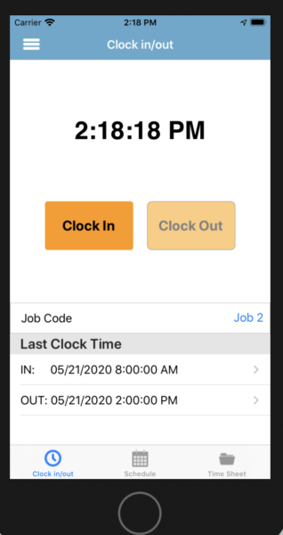 After assigning employees jobs they will see a new row on the clock in/out screen titled “Job Code”: