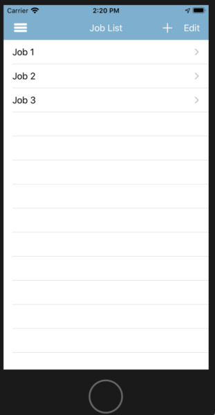 On the job list screen you can add a new job by tapping the + icon at the top right corner of the screen