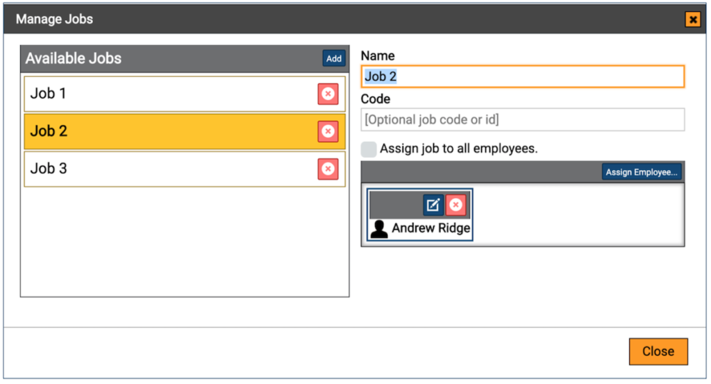 Add a job and assign employees. You can assign all employees to the job or specific employees by clicking the Assign Employee button