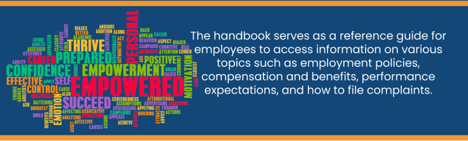 - Lastly, the handbook sets clear expectations for employees about their roles, duties, and performance standards.