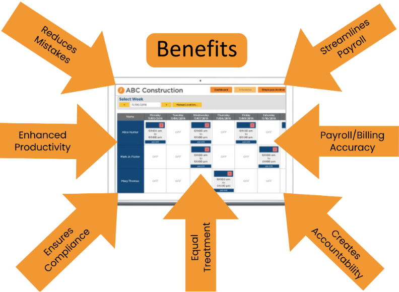 - Leverage time tracking systems and scheduling best practices to enhance efficiency, ensure legal compliance, and promote workforce productivity.