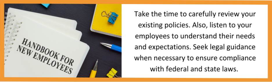 Your employee handbook is the backbone of your business. It helps establish clear expectations. It also provides guidance on company policies and procedures, promotes consistency in employee management, and reduces legal risks.